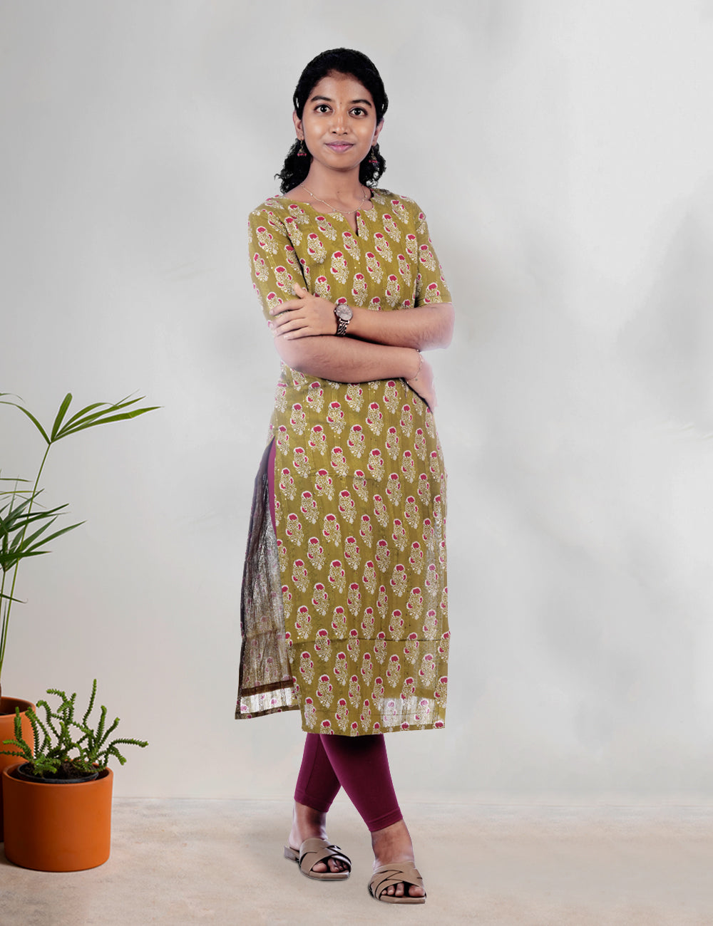 OLIVE GREEN PRINTED NIVAA STRAIGHT KURTI