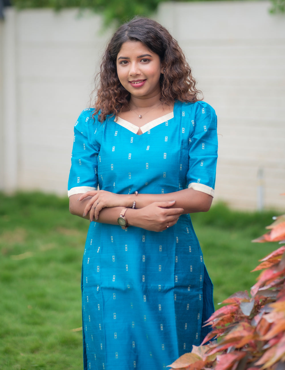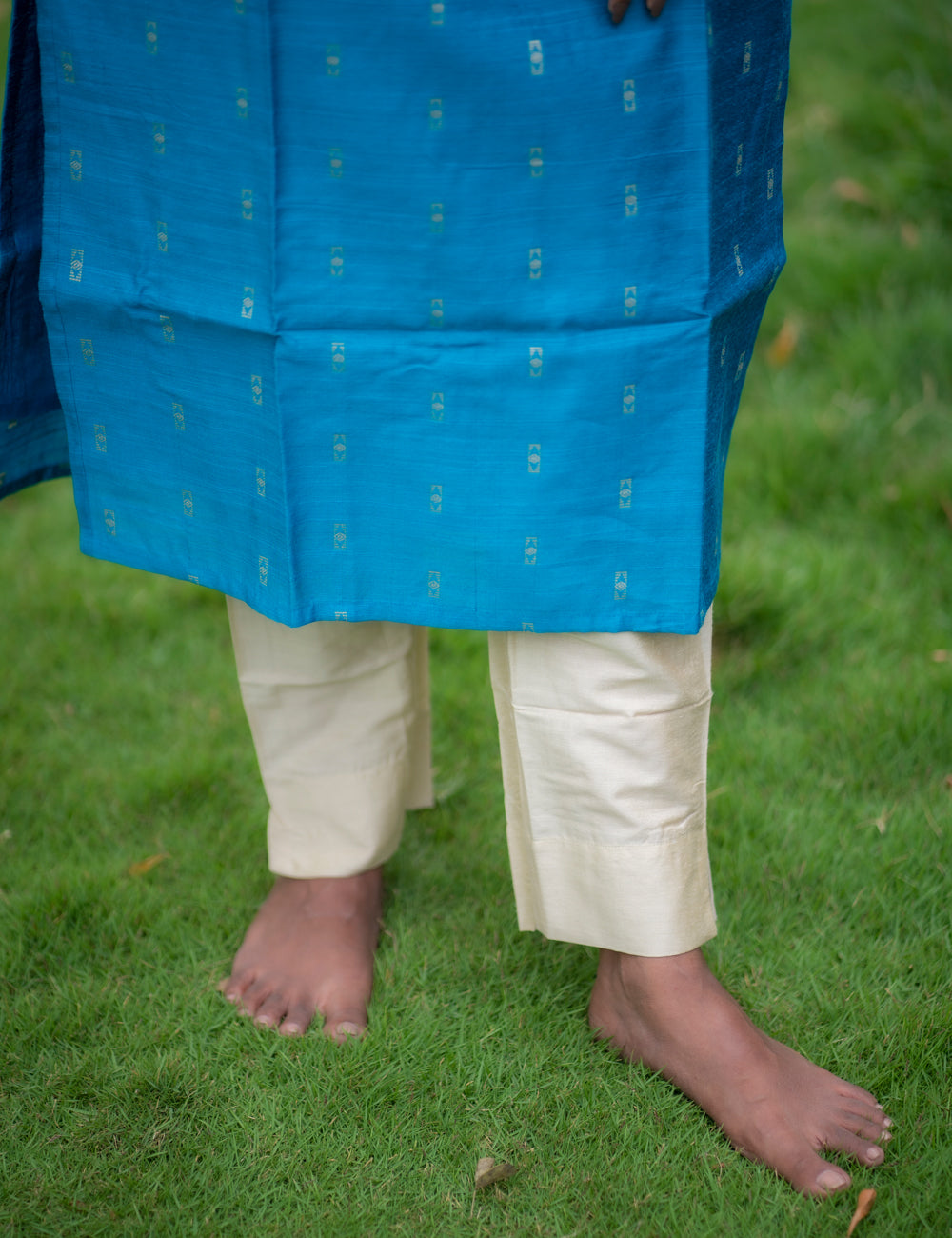 TEAL BLUE RAWSILK BUTTA DIVYA KURTI SET 3 PCS