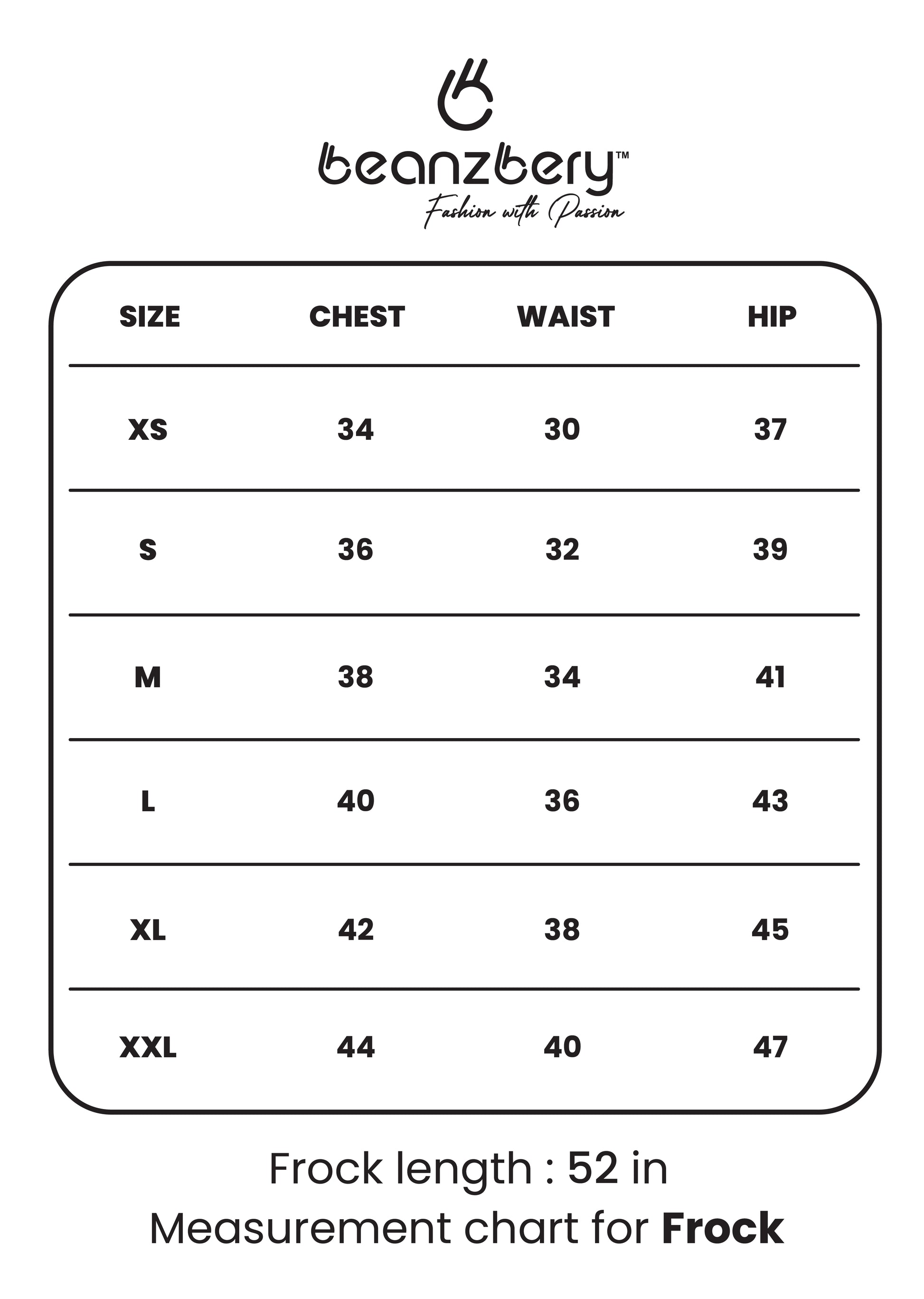 Size Guide For Frock: