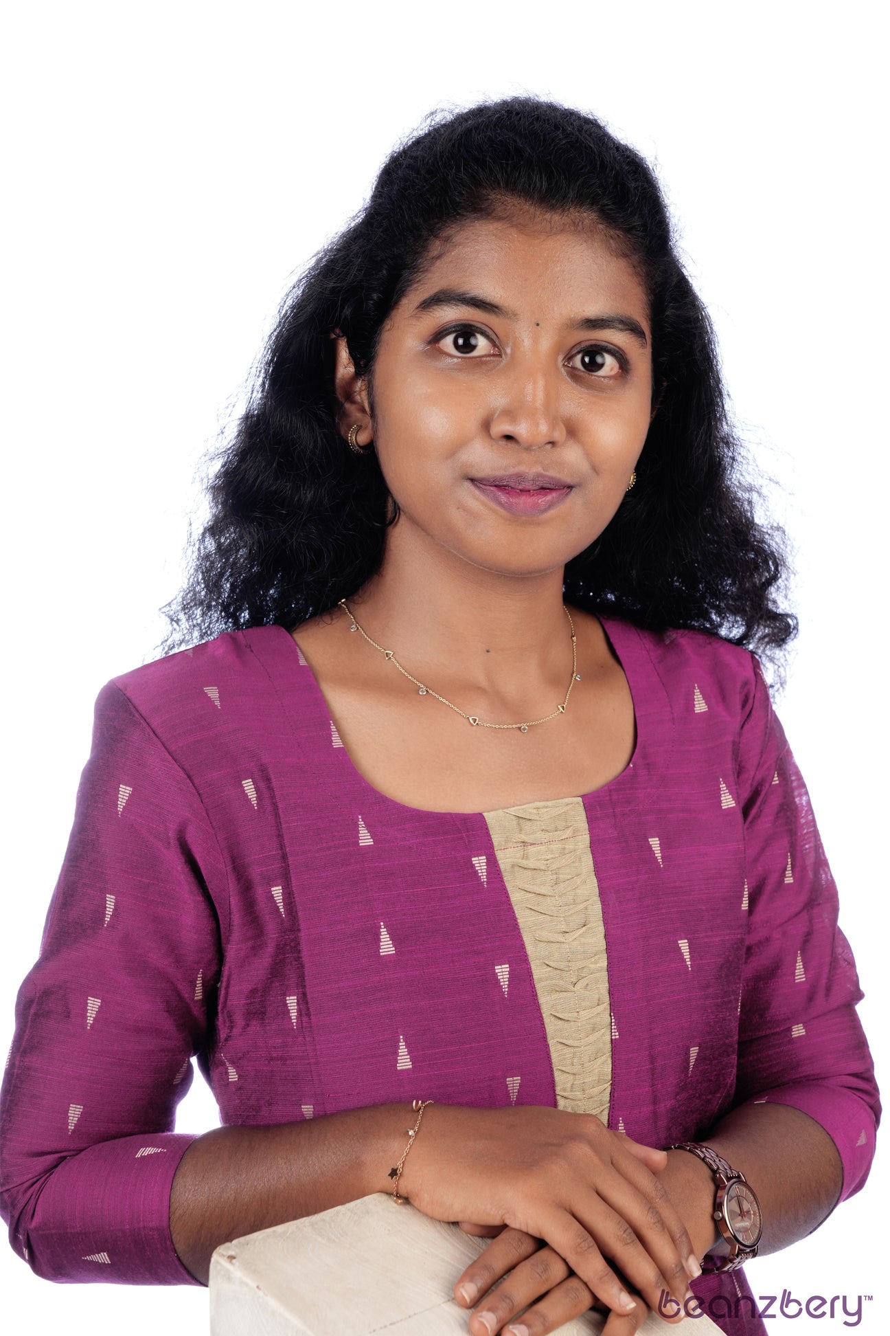 Print: Subtle triangular gold motifs give a modern ethnic touch.