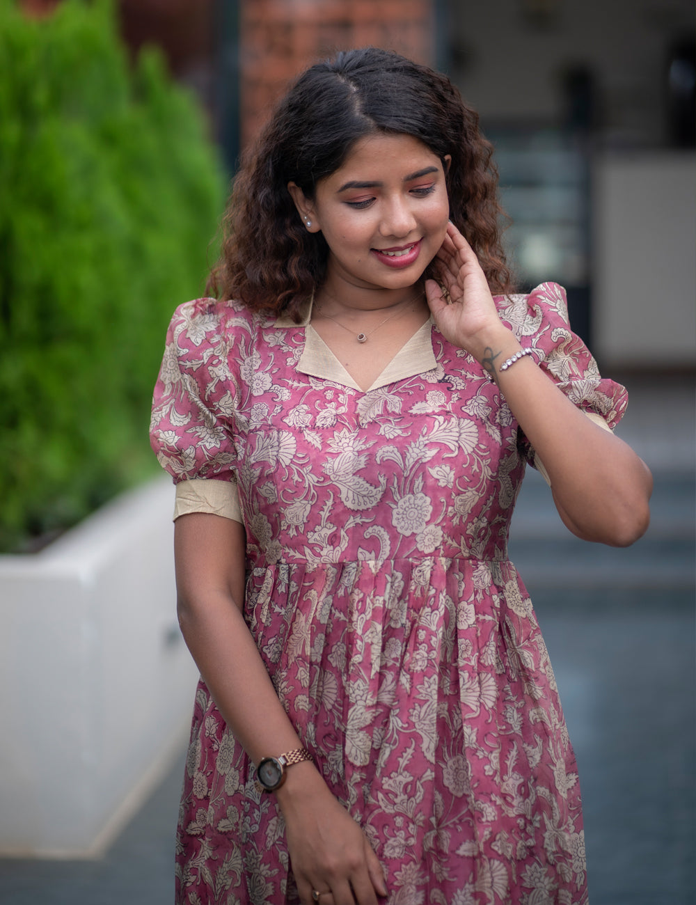 REDDISH - PINK ETHNIC FLORAL FULL FROCK