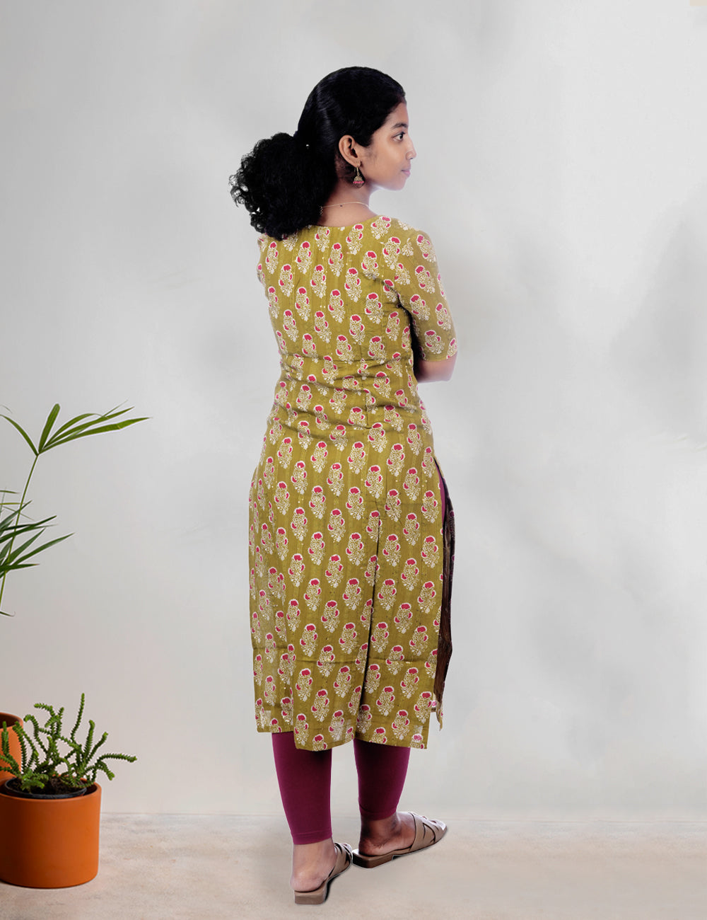 OLIVE GREEN PRINTED NIVAA STRAIGHT KURTI